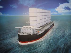 The Wind Challenger Project which was started in 2009 by the University Tokyo and the JIP includes NYK Line, Mitsui O.S.K. Lines, Ltd., Oshima Shipbuilding Co., Ltd., TADANO Ltd., ClassNK and TOKYO KEIKI INC. The vessel is equipped with extraordinary large rigid sails (Height:50m, Breadth:20m, Thick:4m, Area:1,000m2) on the upper deck as a main propulsor which is made by advanced light material such as CFRP composite or Aluminum Alloy. This rigid sail whose horizontal section is crescent shape has a retractable steel spar and totally enclosed wing of composite material, and also has a vertically telescopic reefing and self-rotating mechanism to meet the wind velocity and direction. The four pieces of rigid sails (total sail area 4,000m2) are expected to generate forward thrust enough to drive 84,000DWT Bulk Carrier at the cruising speed of 14knot. The power management system between sails and a Diesel engine is also studied in order to save fuel consumption of the vessel at the hybrid operation mode.
